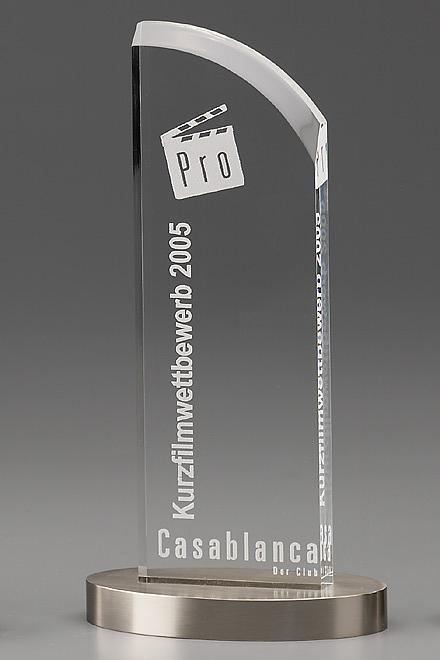 Eine zeitlos schöne Acryltrophäe mit einem hochwertigen, ovalen Metallsockel. Die schlichte Eleganz wird dominiert von dem ins Auge fallenden Metallunterbau.
