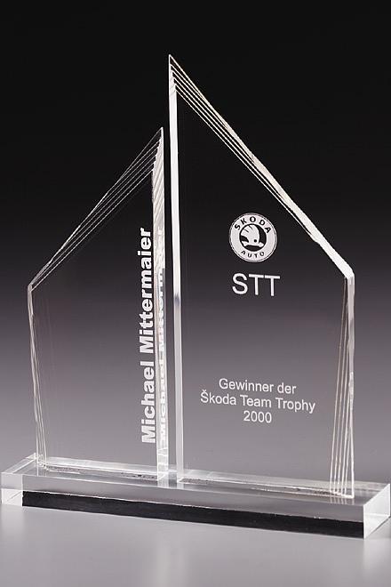 Vermitteln Sie Größe -„simply the bestâ€- mit dieser extravaganten Trophäe. 2 Türme mit gefrästen Kantenverzierungen, aus 18 mm dickem Acryl.