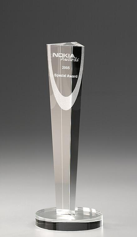 Majestätische Erhabenheit vermittelt diese Top-Trophäe. In der Form eines Dreiecks spitzt sich das Kristallglas nach unten zu. Königlich!